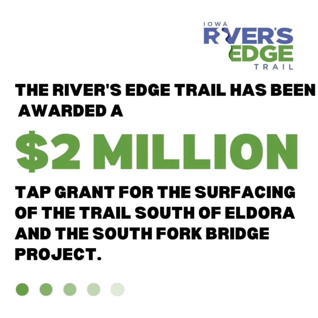 BREAKING NEWS! The River's Edge Trail is excited to announce that the board has been awarded $2 million through the Iowa TAP grant program for the surfacing of the trail south of Eldora towards Gifford and for the South Fork Bridge Project!